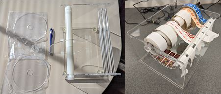 Listing Closed 1 Acrylic label dispenser with 3 CD-shaped separators. (Big thanks to Kate from Lillie M. Evans Library for the photo of one in use)