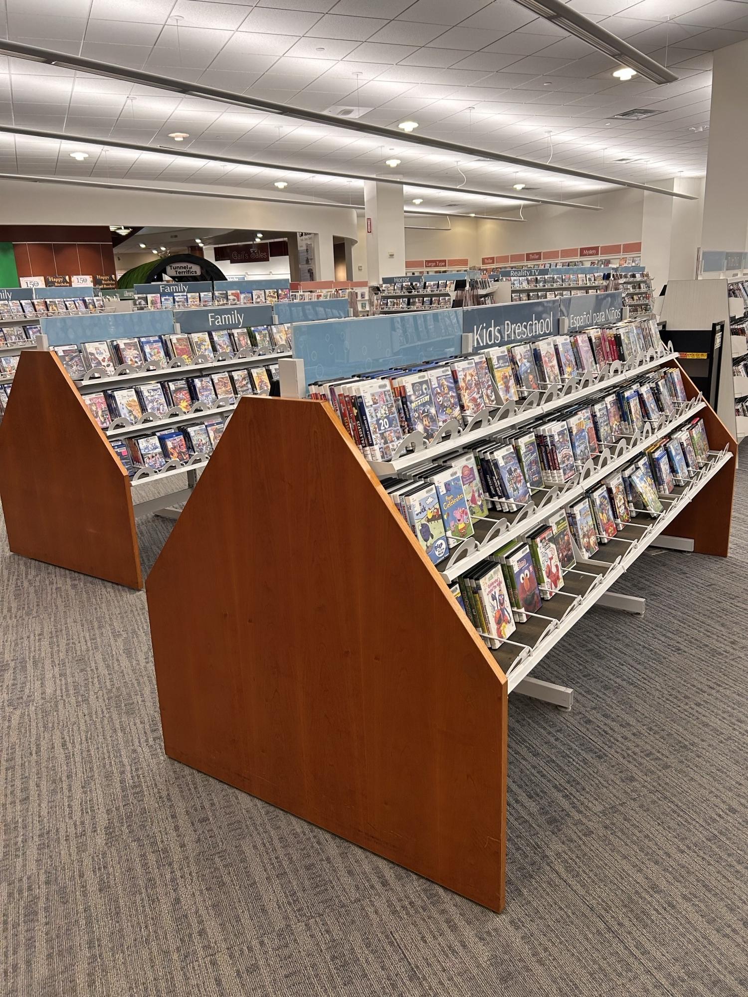 Listing Open We are offering these 2 face-out shelving units. Take one or both! Contents not included. The units are 47" at the base by 48" tall with a 7" inch header insert and 9' in length. In great shape. They can be picked up at the main library.