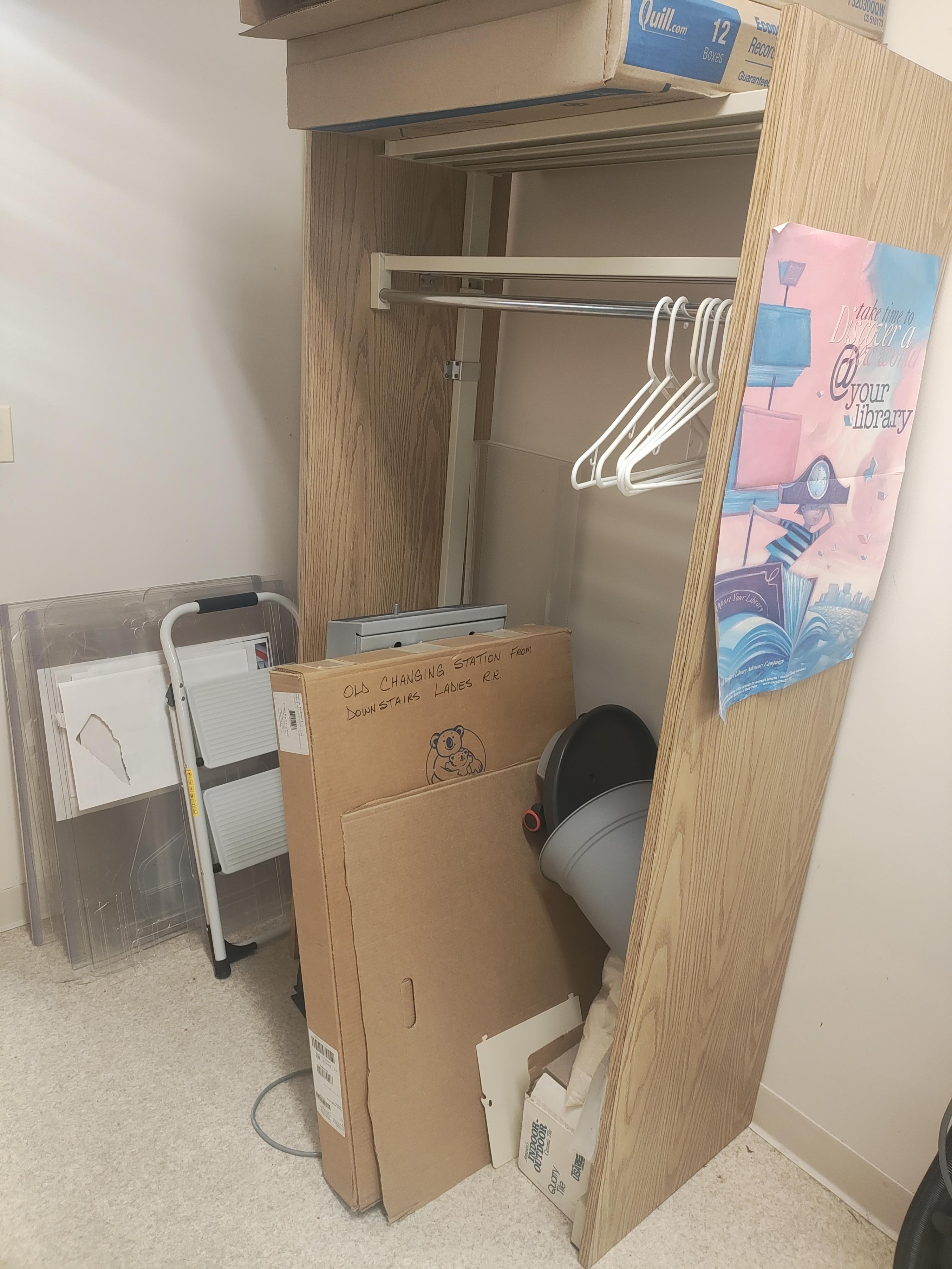 Winter is coming and 'tis the season. . . For your patron's need to hang their jackets, coats, and so on! Prepare with this coat rack with storage space above.