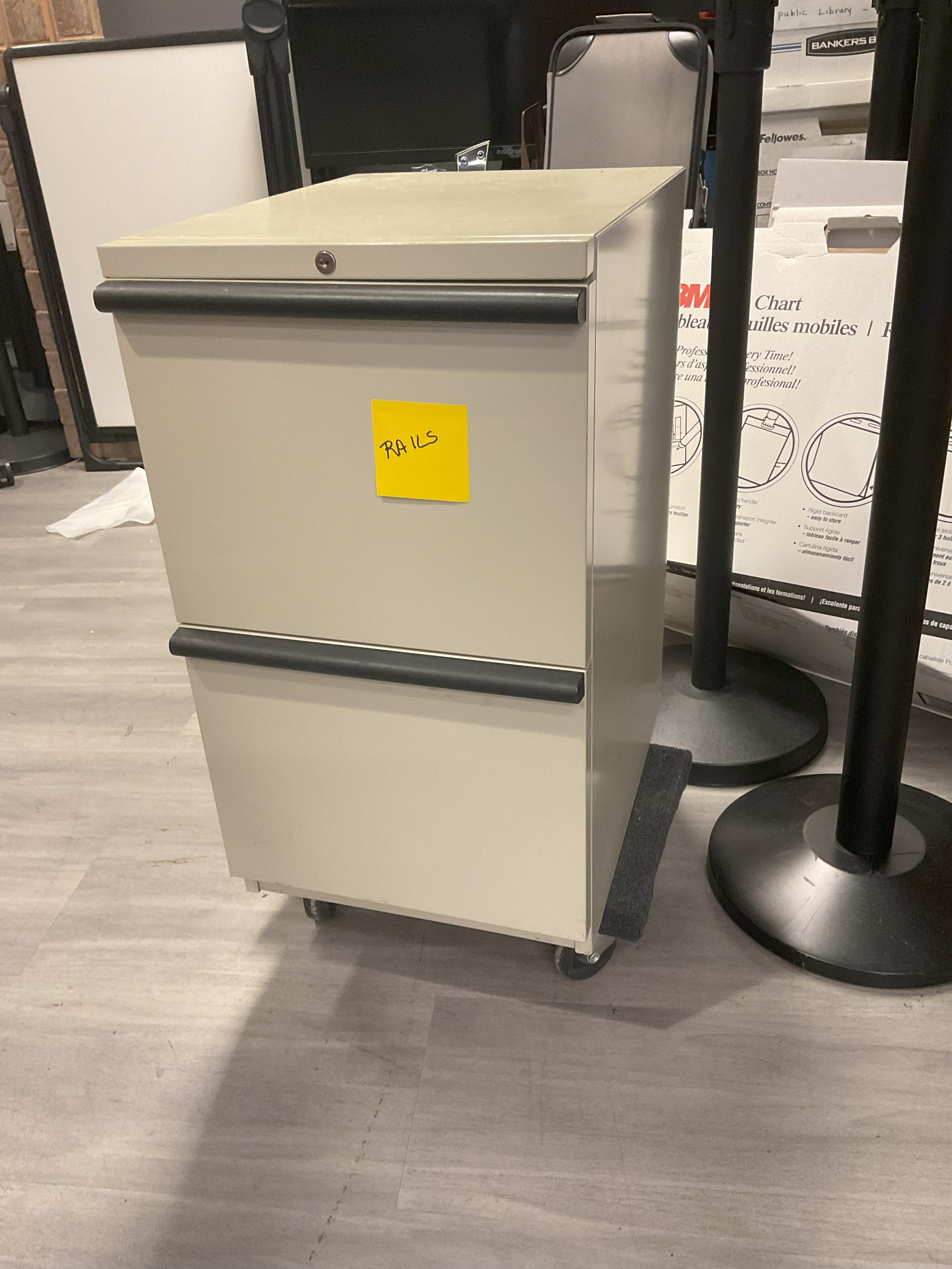 File cabinet with two drawers measures 15 inches wide, 19.75 inches deep and 26.5 inches high . Key is missing.