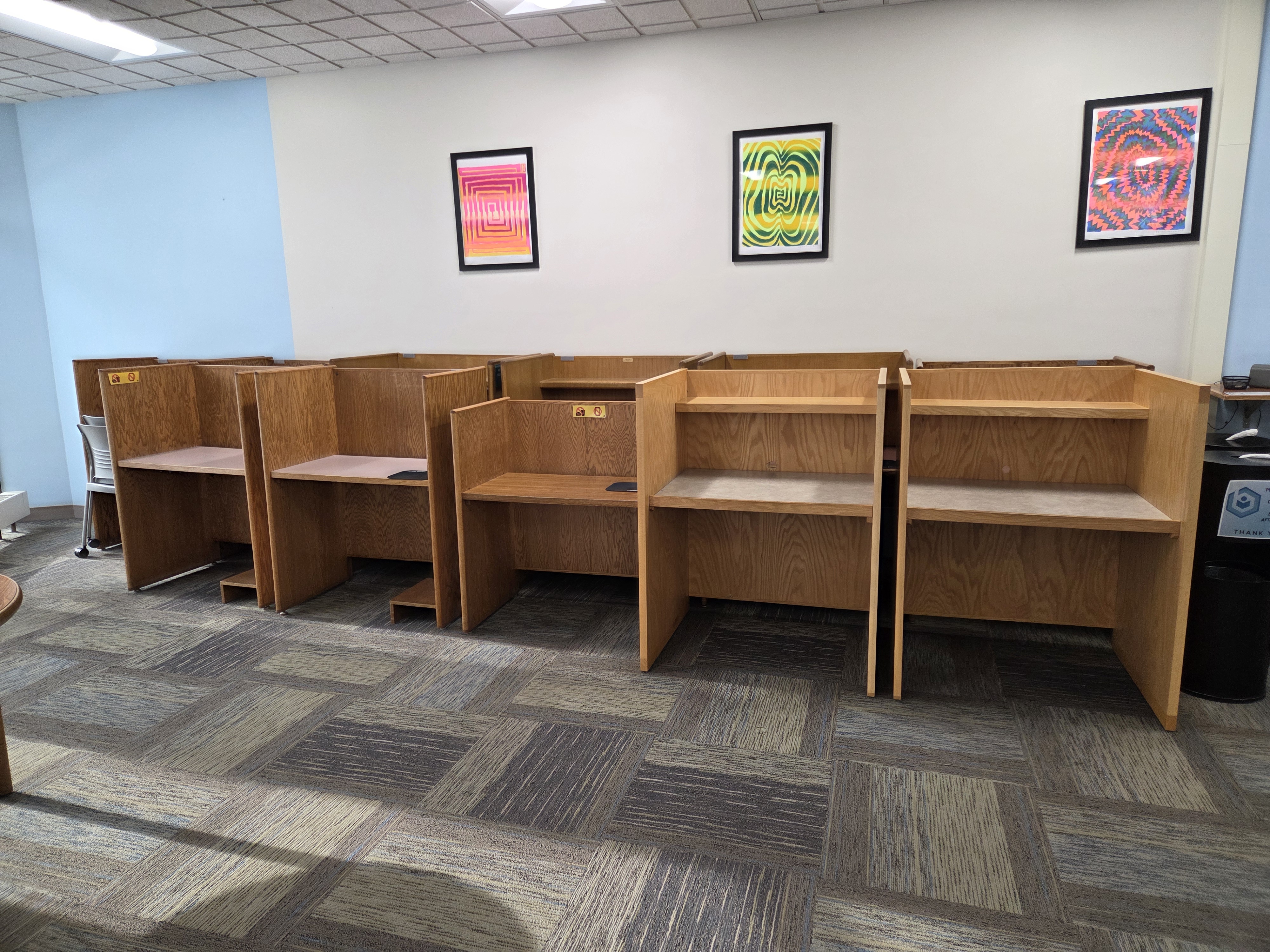Listing Open We have 11 solid oak study carrels for free. The one in the center is a bit shorter than the others. Must be picked up with your own help provided.