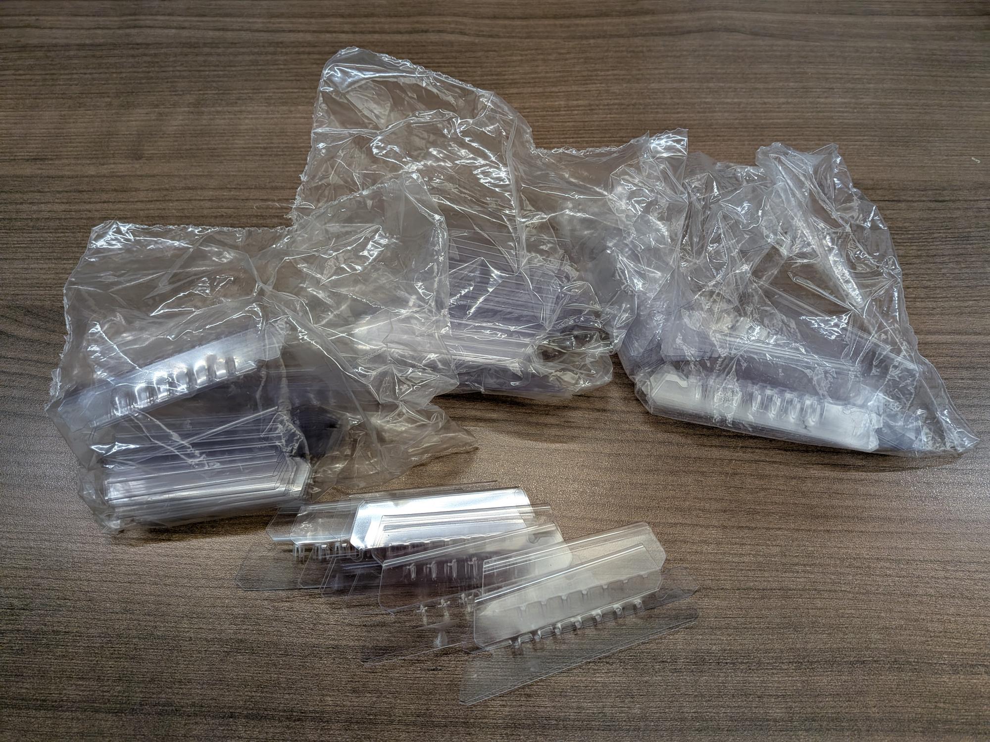 Free. 3 unopened bags of standard size hanging file folder plastic tabs.