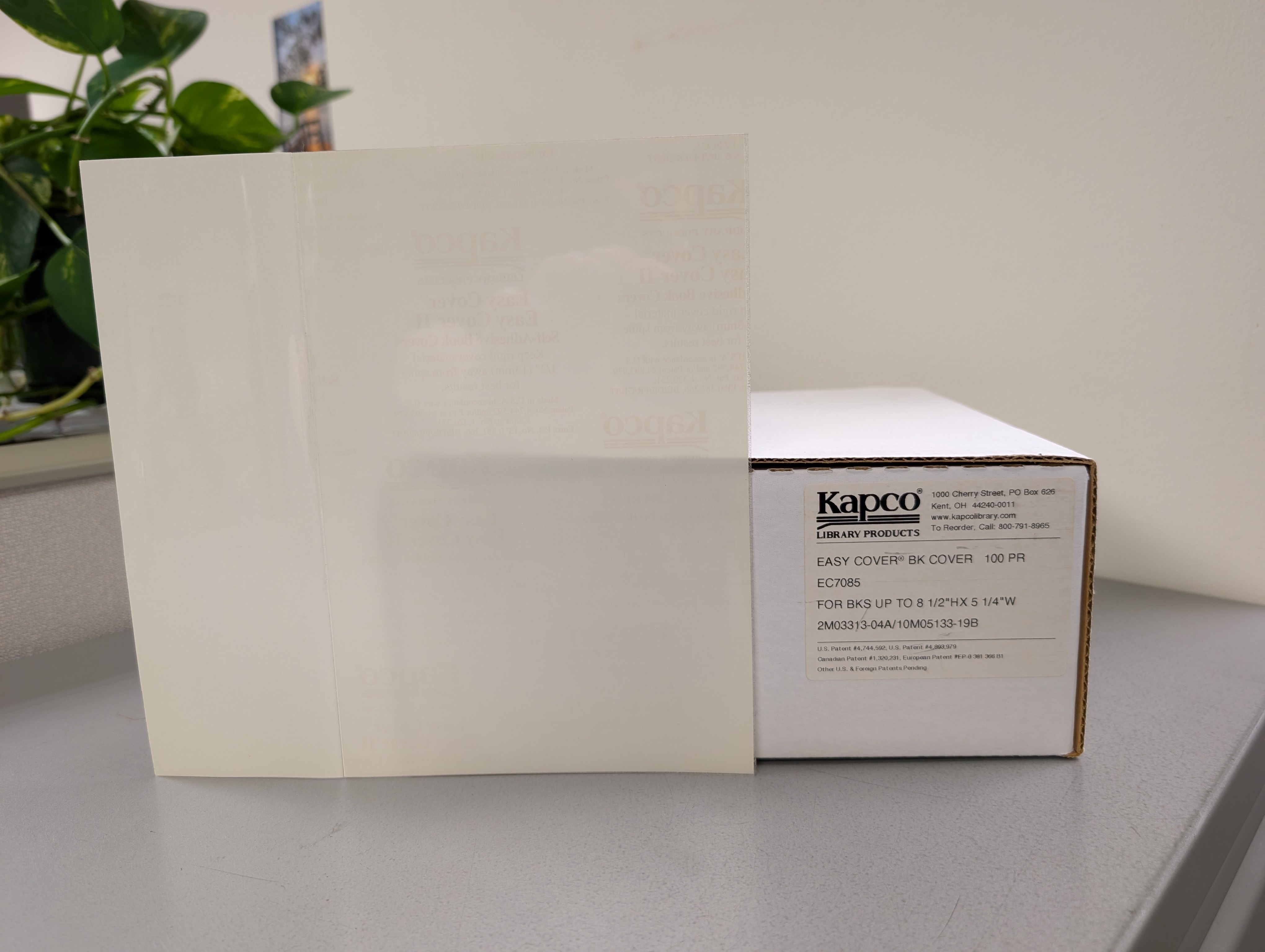 Two boxes of Easy Cover Book Cover (100 PR) for books up to 8.5"H x 5.25"W.  Here's a link to the boxes we have: Easy Cover Book Cove 8 1/2"Hx5 1/4"W 100 pairs/box | KAPCO