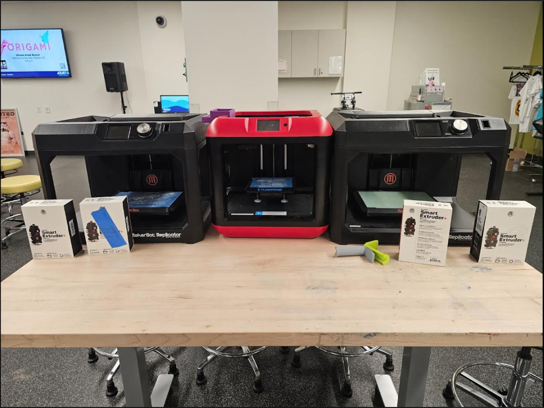 The 2 Makerbots are working, however they are very old (circa 2012). We also do have some replacement nozzles for them!
